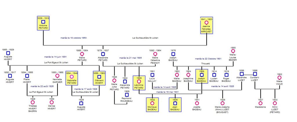 Nous avions effectivement quitté Joseph BADEAU et sa femme Léontine ou Titine PÉTARD le jour de leur mariage en 1932.