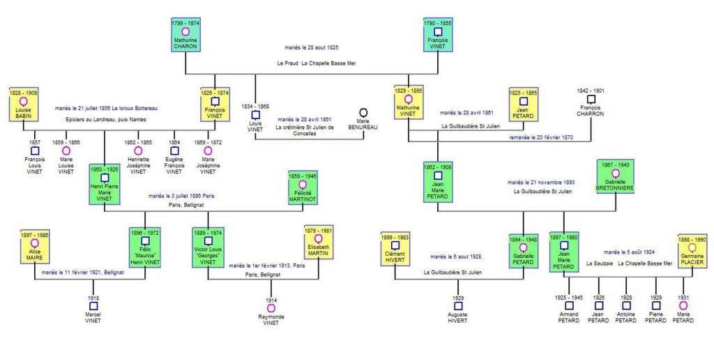Merci pour la photo de Félicité dont le décès nous a bien attristé, elle qui nous donnait régulièrement de vos nouvelles. Elle était fière de la réussite de ses deux garçons ! Nous aussi nous nous permettons de vous envoyer deux clichés, l’un de Clément et Gabrielle, et moi avec Antoine et Jean et des Anglais.
