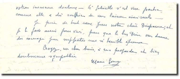 Maman, Papa, je vous unis ce soir dans la même pensée et puisque le bonheur terrestre nous est enlevé, prions pour acquérir le bonheur éternel.