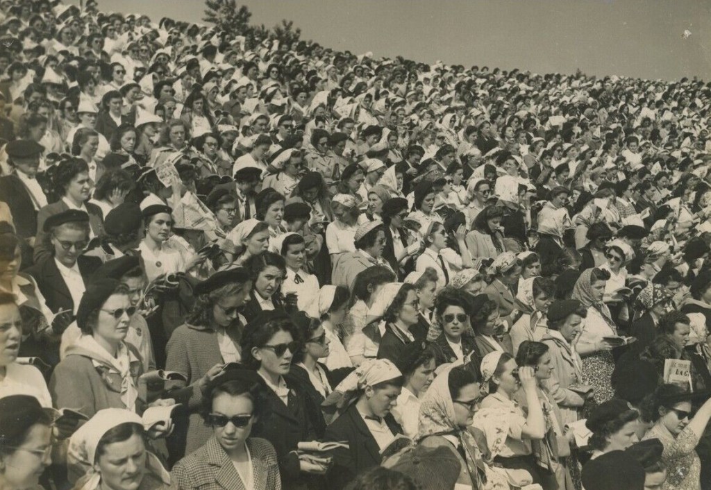 Marie raconte : « Je suis partie avec une bande de filles de la Chapelle-Basse-Mer. On logeait à Colombes chez une personne dans les parents étaient originaires du Loroux. On avait envahi Paris car on était plus de 50 000 participants. C’était un rassemblement très enthousiasmant. On voyait toute la richesse et la créativité des jeunes ruraux, garçons et filles. Même si nous étions ensemble à Paris, les activités de la JACF et de la JAC étaient bien séparées ».