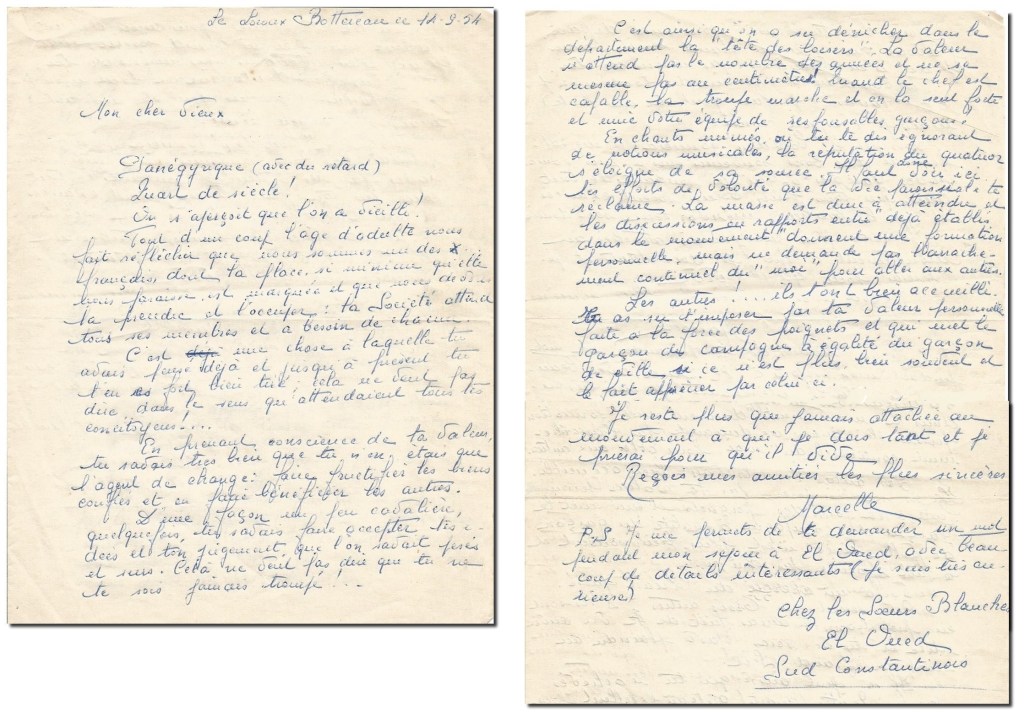 Parfois Auguste montre son épuisement devant l’ampleur de sa mission et il se confie à quelques camarades militants de la JAC comme Marcelle Gaborit du Loroux-Bottereau et engagée elle aussi au sein de la JACF. Elle lui envoie cette lettre à l’occasion de ses 25 ans.