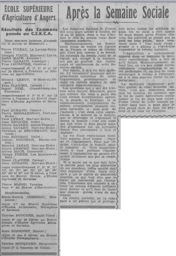 En janvier, Auguste est de retour sur l’exploitation de la Guilbaudière. Fini le temps du service militaire, dont le seul avantage selon ses dires a été de lire et de parfaire sa culture générale. Il choisit alors de s’engager pleinement dans la JAC (Jeunesse agricole catholique) et d’abord localement.