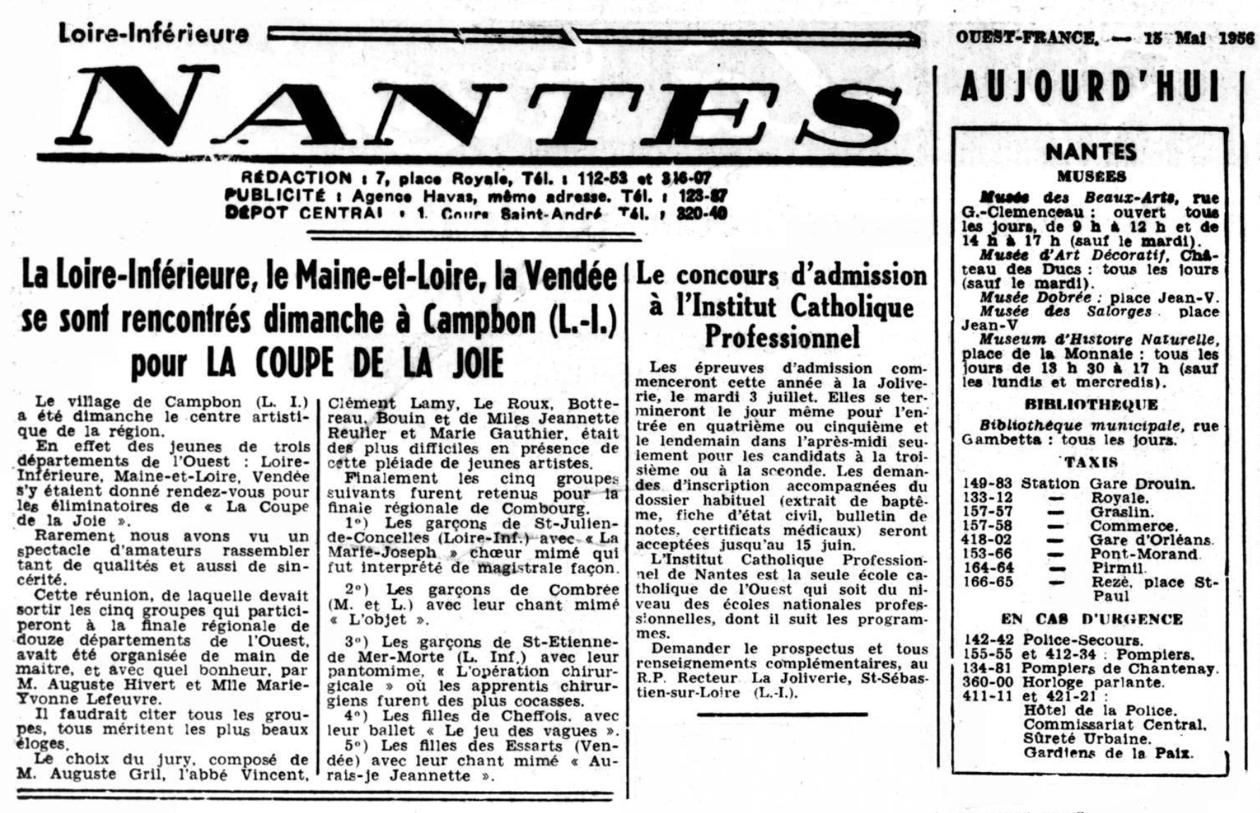 Marie raconte : « Je suis partie avec une bande de filles de la Chapelle-Basse-Mer. On logeait à Colombes chez une personne dans les parents étaient originaires du Loroux. On avait envahi Paris car on était plus de 50 000 participants. C’était un rassemblement très enthousiasmant. On voyait toute la richesse et la créativité des jeunes ruraux, garçons et filles. Même si nous étions ensemble à Paris, les activités de la JACF et de la JAC étaient bien séparées ».