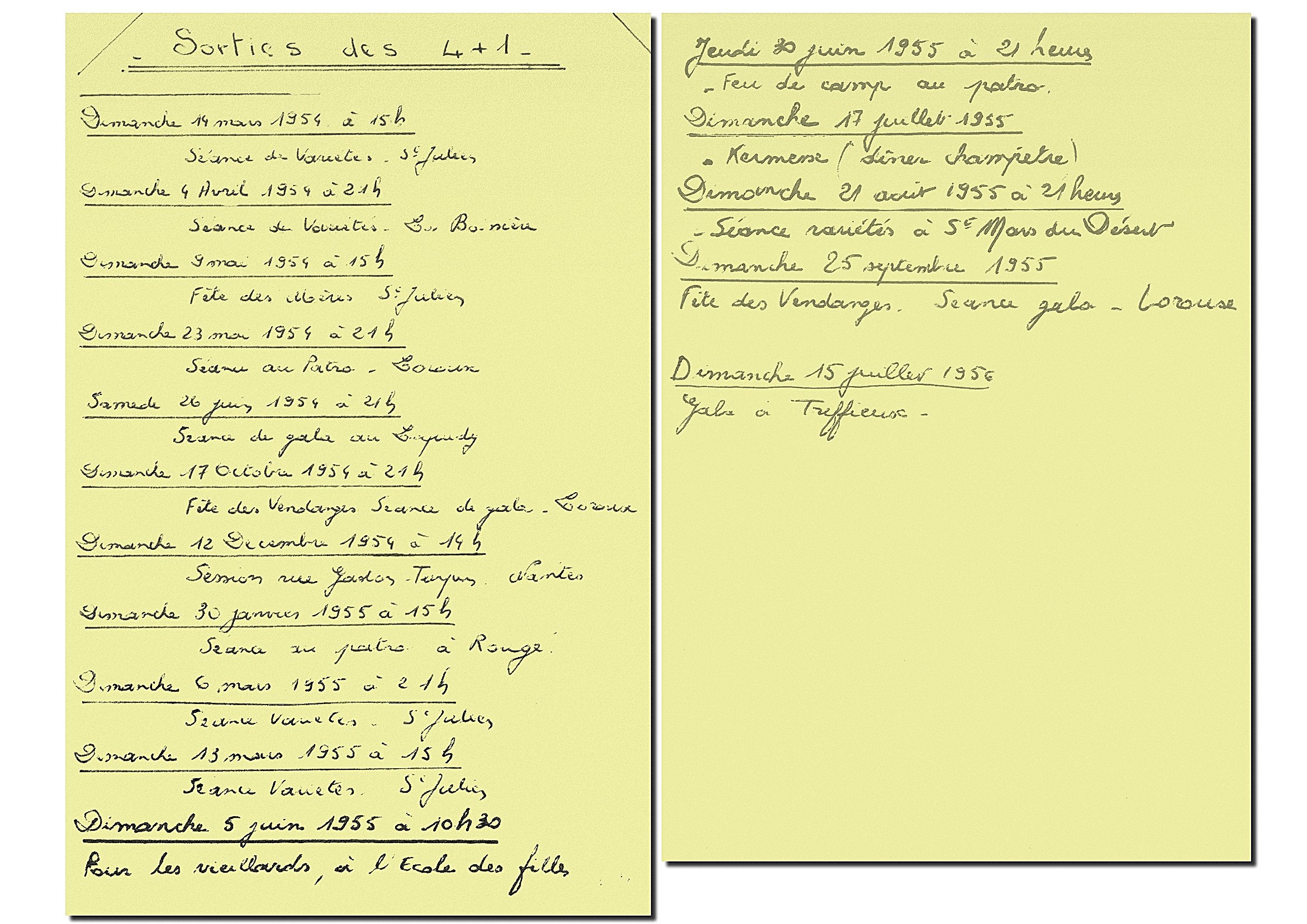 « Nous étions demandés dans différentes fêtes du département » dit Jean-Clément qui a consigné sur une fiche l’ensemble des représentations de 1954 et 1955.