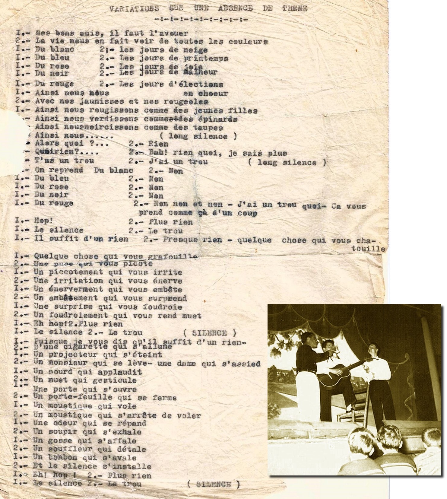 « Les séances étaient ponctuées de nos textes à nous… des sketches humoristiques comme « Variations sur une absence de thème » que je jouais avec Auguste » complète Dédé.