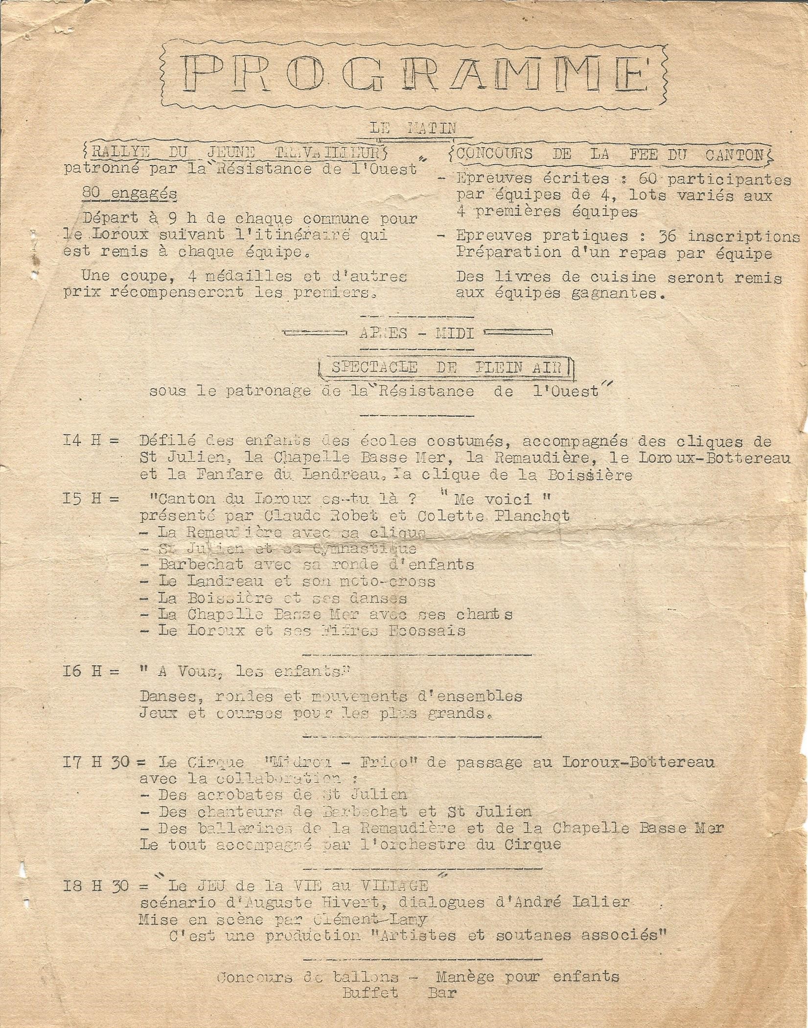 Cette fête inédite est organisée sous l’égide du mouvement local de la JAC et de la JACF et sous le patronage du journal « La résistance de l’Ouest ».