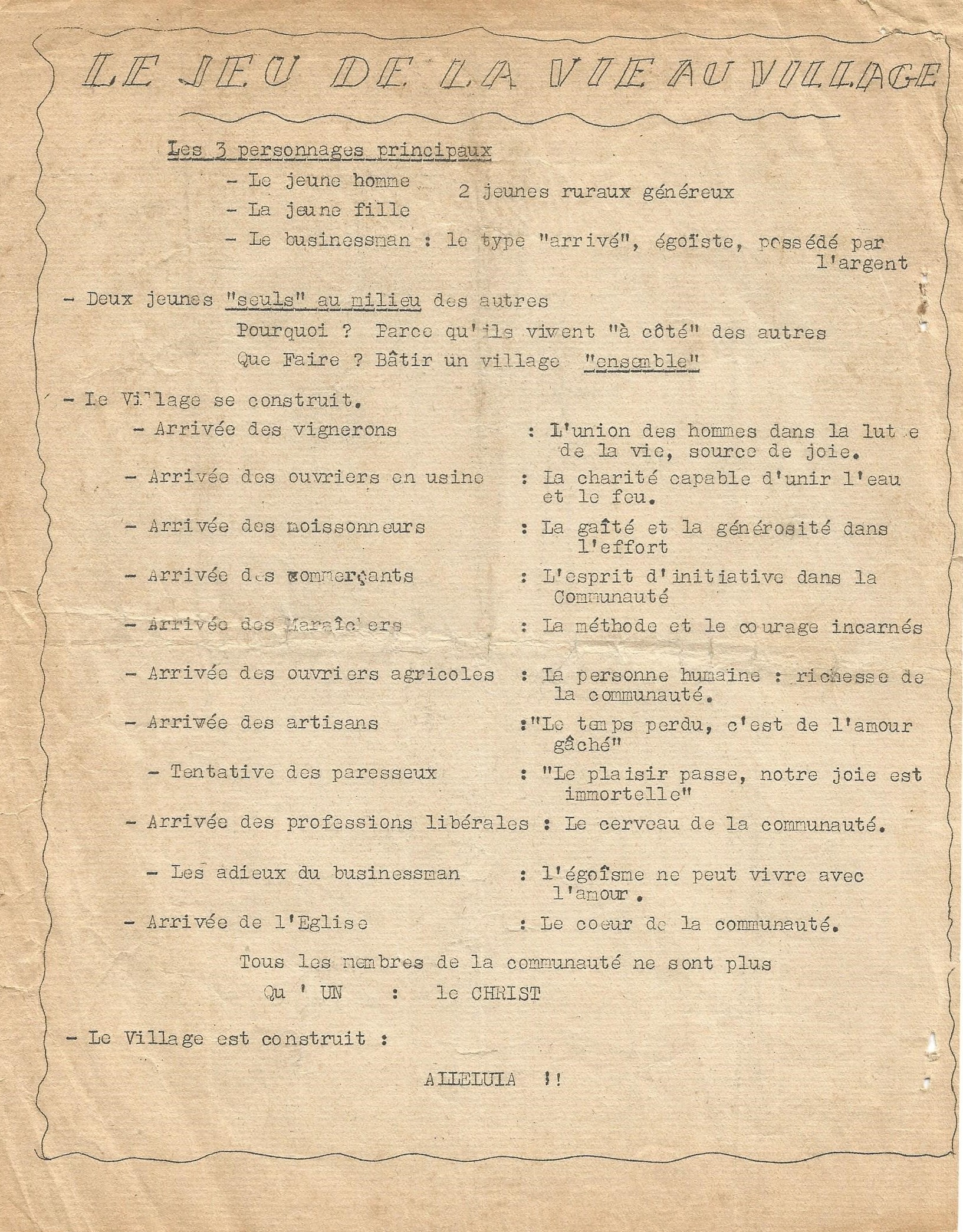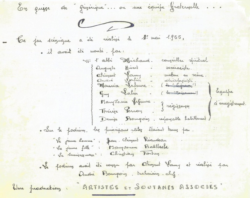 « Le jeu scénique a été monté par une petite équipe autour de l’abbé Michaud qui était à cette époque notre aumônier de la JAC » confirme Denise BOURGOIN, alors militante JACF du Canton.