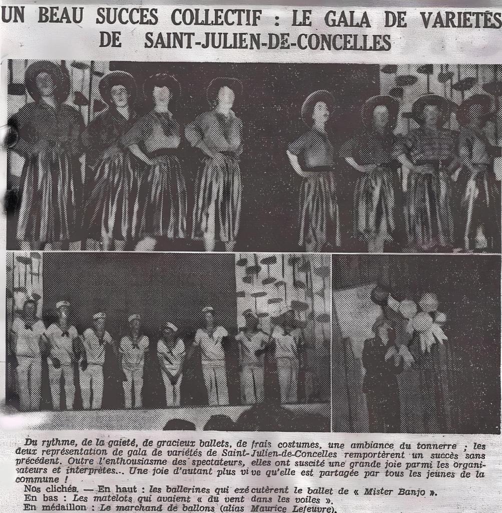 Tout au long des années 50 à Saint-Julien-de-Concelles, les galas de variétés annuels faisaient la joie des petits et surtout des plus grands. Beaucoup de Concellois étaient mobilisés pour ces représentations qui se déroulaient durant la période hivernale. Des groupes se sont formés comme « les quatre plus un ».