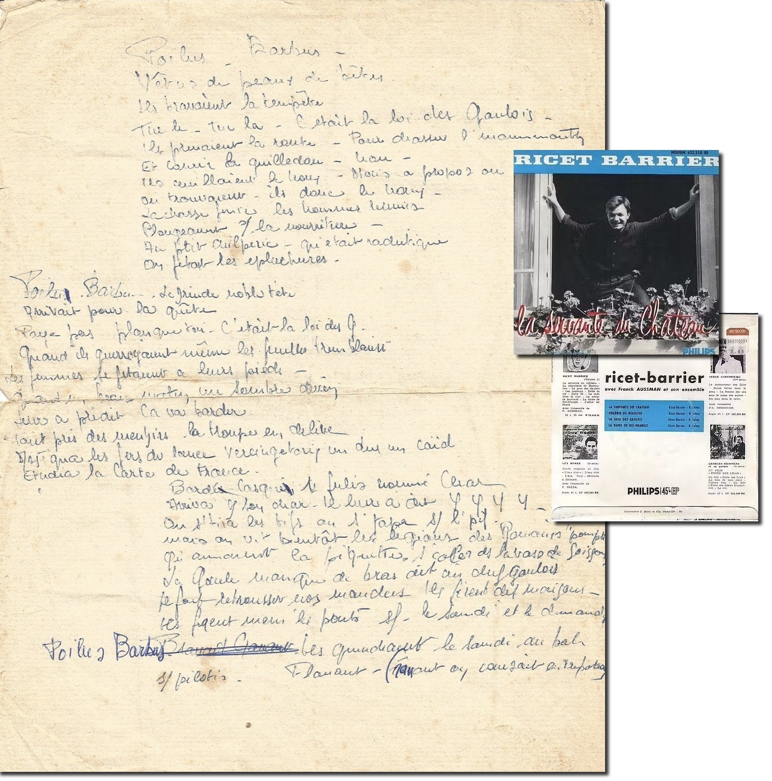 Retranscription écrite de la main d’Auguste de la chanson de Ricet BARRIER : « La java des gaulois ».