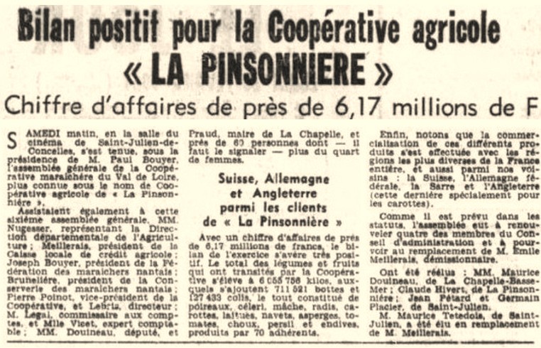 Nous avons démarré avec un capital de 3 millions de francs, après avoir reçu la promesse de créer une station de conditionnement à la Pinsonnière à La Chapelle-Basse-Mer à proximité des ponts de Mauves pour faciliter le flux des marchandises. »