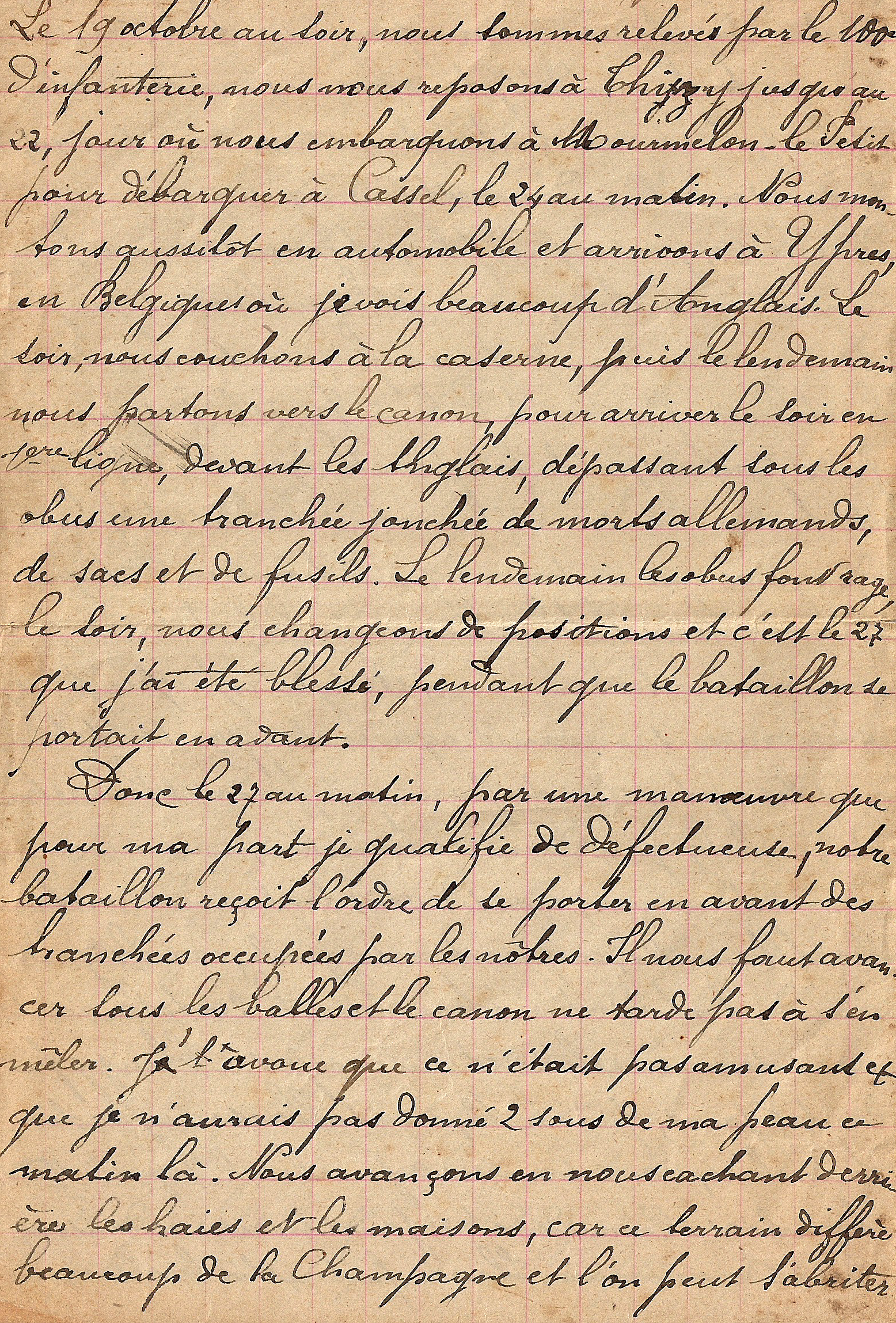 Il raconte, dans un extrait de son journal « Récit d’un rescapé », les circonstances de sa blessure du 27 octobre.