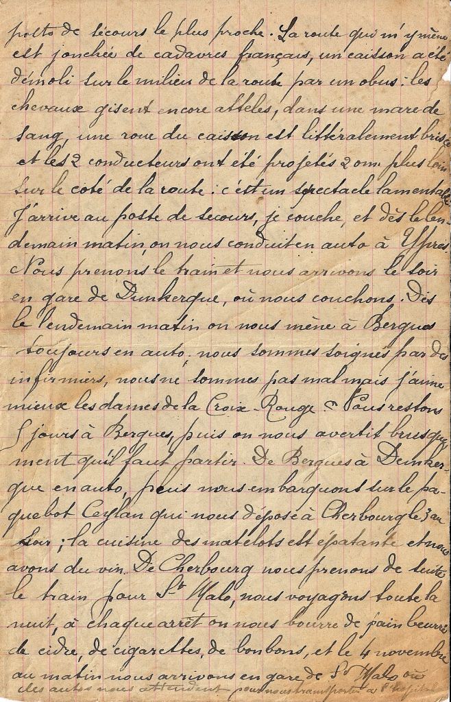 Il rejoint ensuite Dunkerque sur le « Ceylan » jusqu’à Cherbourg le 3 novembre pour se rendre ensuite par le train jusqu’à St Malo le lendemain.