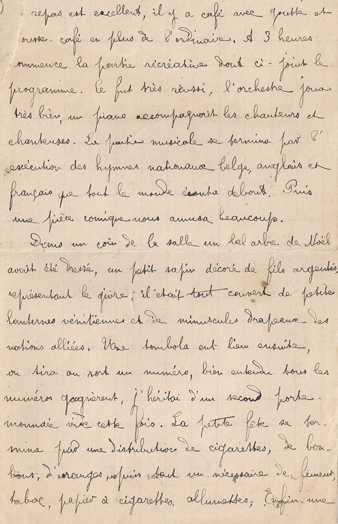 Le 26 décembre, malgré une soirée de Noël loin des siens il décrit l’ambiance suivante…