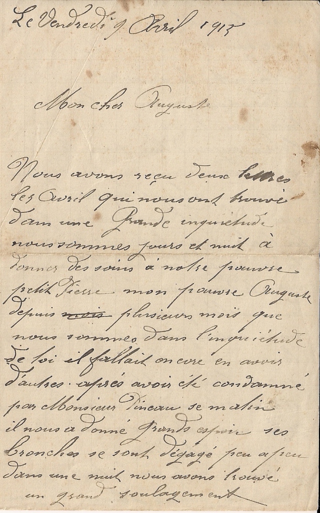 Voici les lettres envoyés par ses parents Marie et Auguste les 8 et 9 avril 2015.