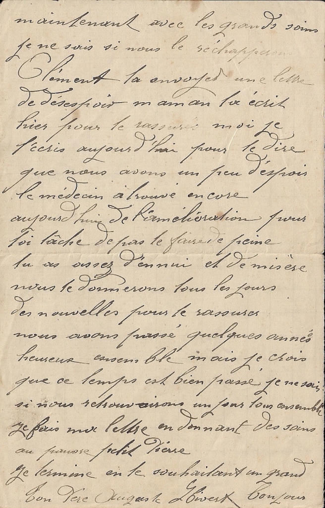 Mais ce qui l’inquiète encore plus, c’est l’état de santé de son frère Pierre qui, au Portégaud, est annoncé mourant, victime d’une pneumonie, puis finalement se rétablit.