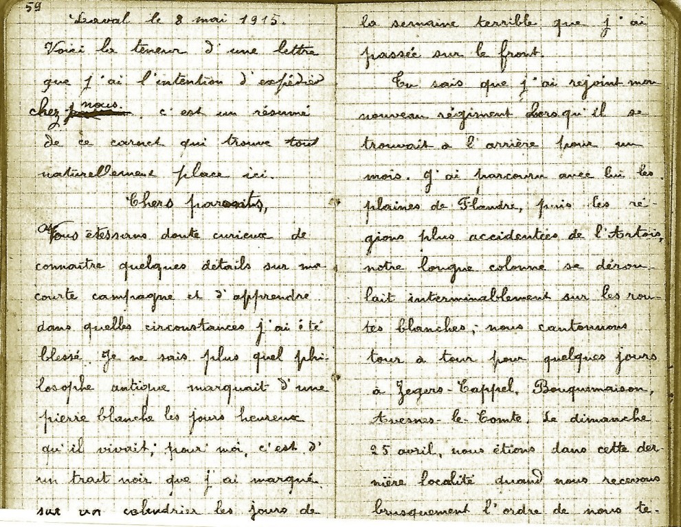 2ème partie : du 23 mars 1915 au 17 juin 1915 : Bataille de Belgique – Yperlée puis Laval (Blessure)