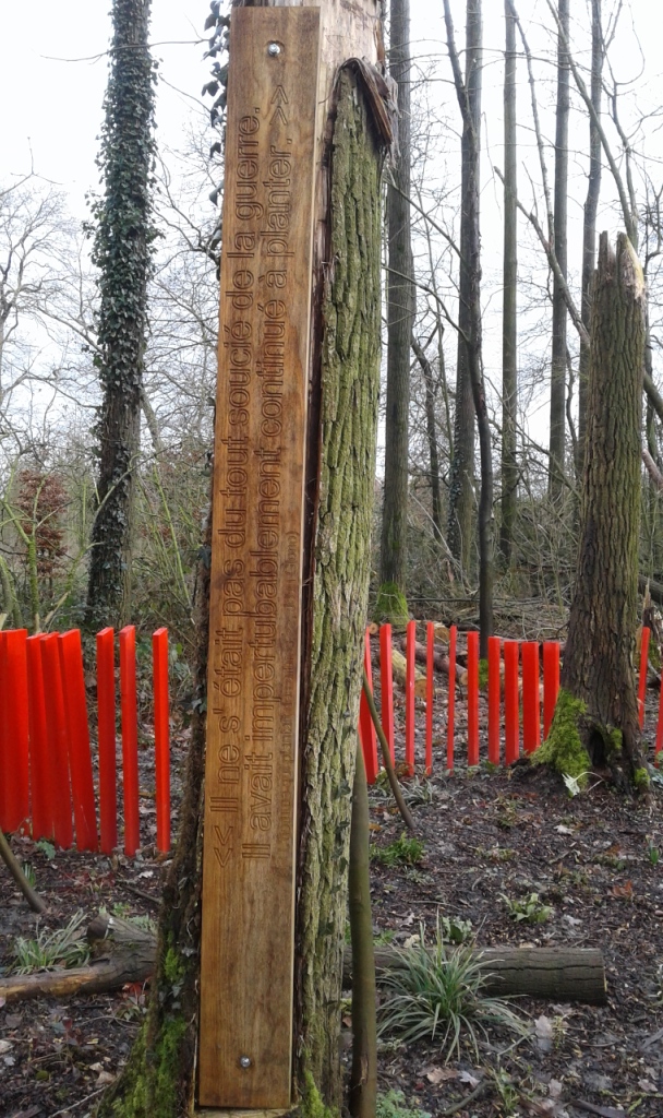 A Zonnebeke, commune de Flandre néerlandophone, il y a peu d’indications mémorielles de cette période de l’automne 1914, mais plutôt sur celle de 1917 où de nombreuses troupes britanniques ont été engagées. En témoigne le très beau Parc–jardin du Souvenir de Zonnebeke qui rend hommage aux soldats tombés sur le sol de la Flandre, quelles que soient leurs nationalités : britannique, belge, allemande, canadienne, française, mais aussi australienne, néo-zélandaise et même mahorie. Une belle création artistique…