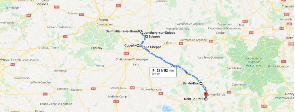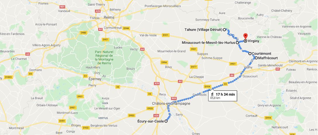 De Châlons sur Marne à Haudainville (près de Verdun)