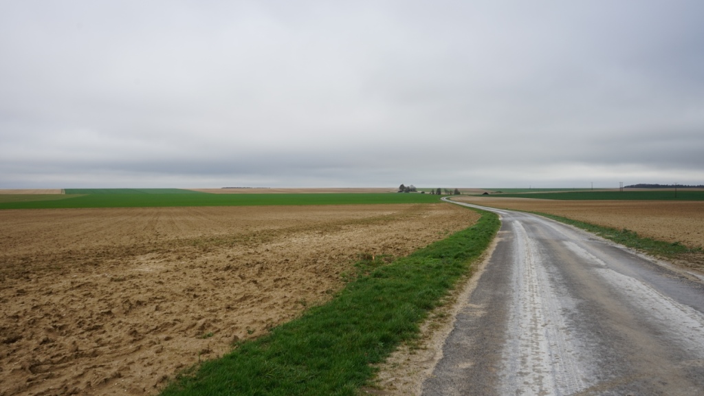 De bon matin, après une nuit à Châlons, nous prenons la direction du Bois Raquette et circulons sur les petites routes de la plaine de Champagne. Des bois de sapins, nous n’en voyons plus guère et nous avons bien de la peine à retrouver le Bois Raquette.