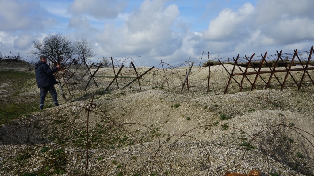 Nous visitons les lieux de bataille de Massiges. A la « Main de Massiges », une association locale a reconstitué les tranchées de ce site stratégique qui domine la plaine et qui a fait l’objet d’âpres combats.