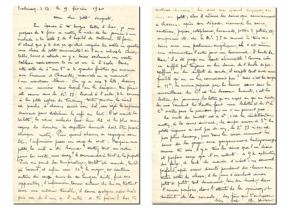 Dans sa correspondance d’une quinzaine de lettres, il décrit notamment la vie de l’établissement et la journée d’un patient.